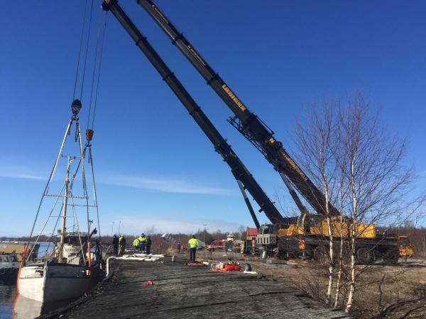 Nostokonepalvelu AT Oy oli mukana pelastusoperaatiossa, kun huhtikuun alussa uponnut troolari nostettiin meren pohjasta 12.-13.4. Nosto-operaatio toteutettiin yhteisnostona. Aluksen koko on 18mx6m ja sen arvioitiin painavan noin 40-50 tonnia. Nostotyöhön pääsivät Demag AC 350 sekä Liebherr LTM 1200.
